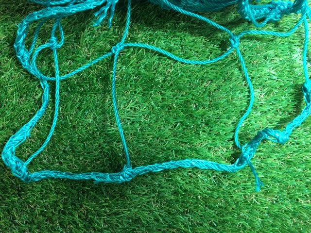 * Die unteren Maschen sowie die Seiten des Netzes sind zusammen mit einer Schnur oder Linie eingefasst.